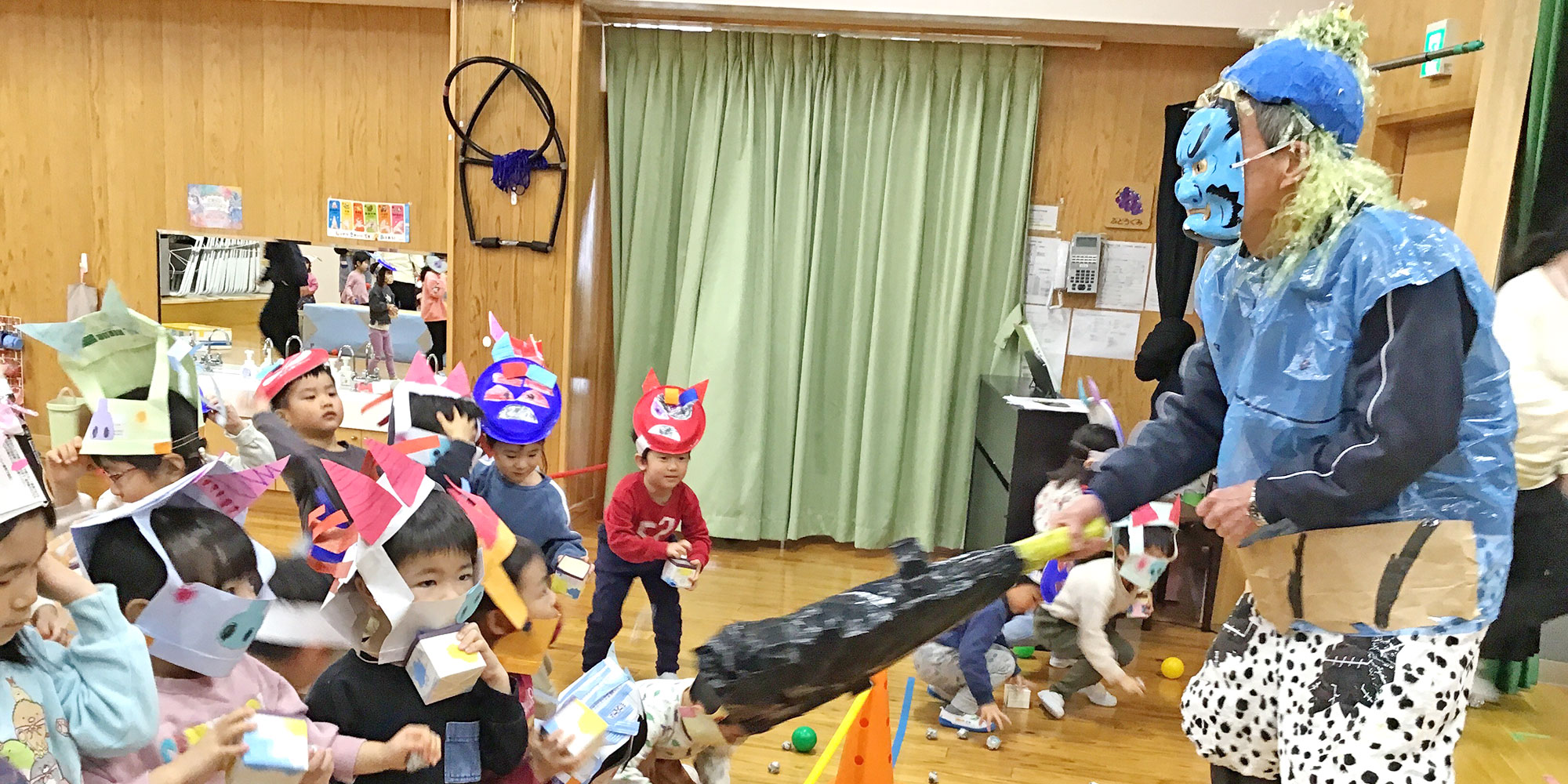 誕生月のお子さんに、子どもたちからの歌のプレゼントや職員からのお話のプレゼントをして、みんなでお祝いします。保護者の方にはクラス毎の遊びに参加していただきます。