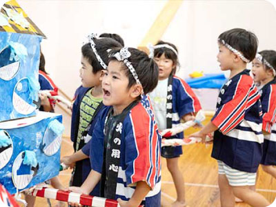 誕生月のお子さんに、子どもたちからの歌のプレゼントや職員からのお話のプレゼントをして、みんなでお祝いします。保護者の方にはクラス毎の遊びに参加していただきます。